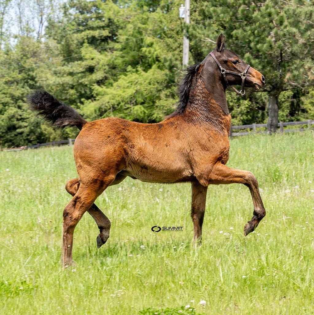 This impressive young stallion stands well over 16 hands and his incredible shoulder, short cannons, naturally high set tail and lofty trot will put the icing on the cake of his already legendary pedigree. Fire Run Farm has planned this young stallion well and is excited to welcome him to their World Champion line up of sires.