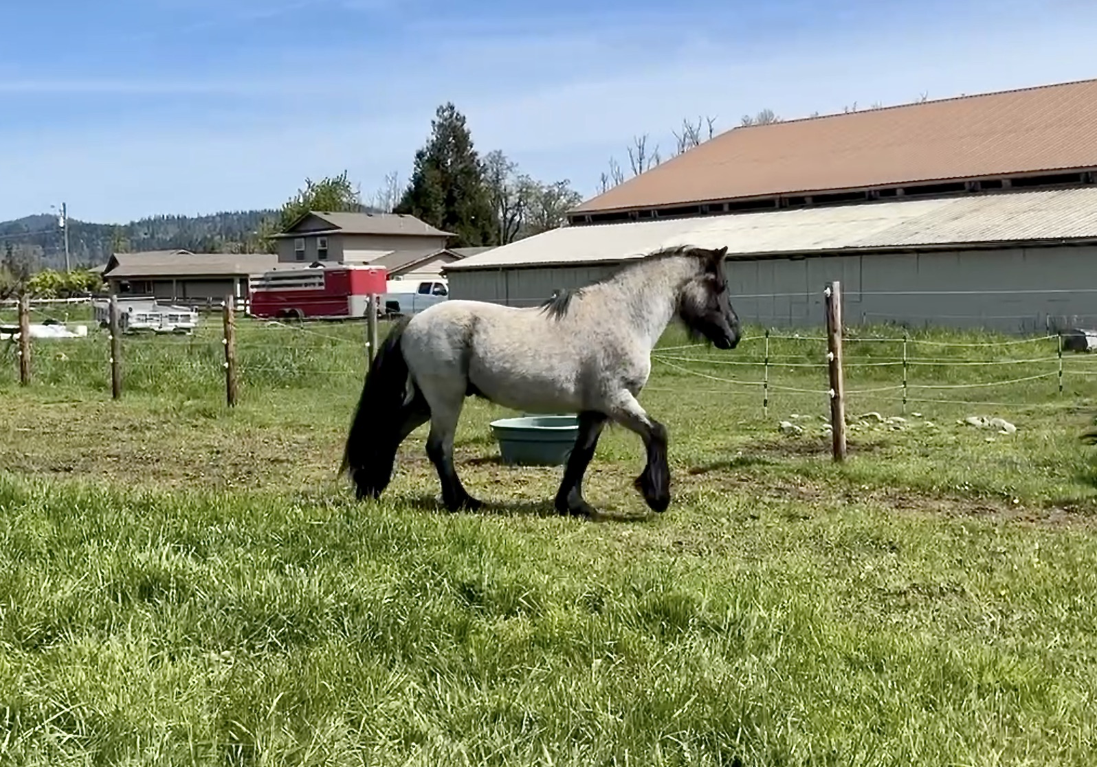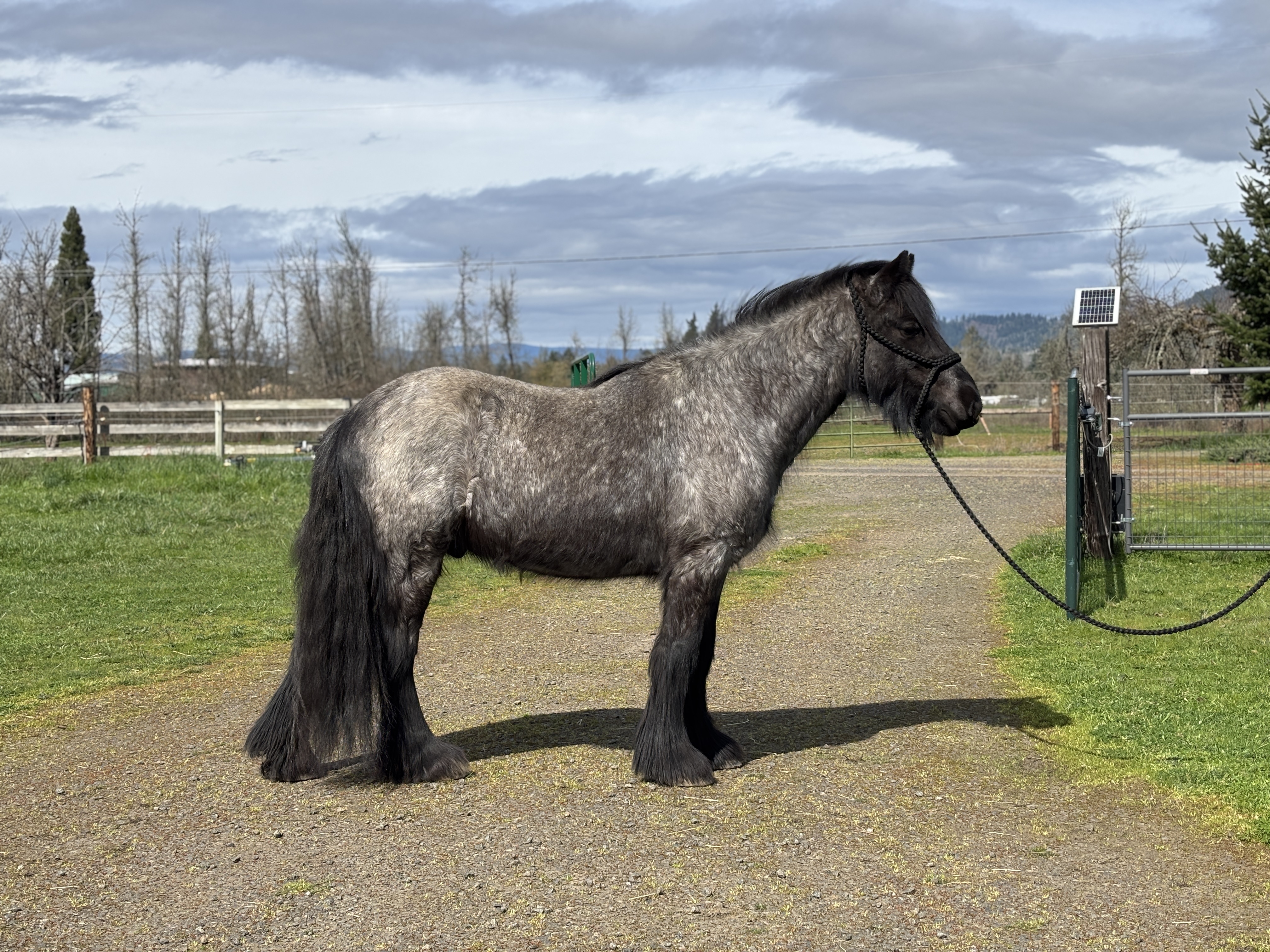2022 Imported Blue Roan Stallion. FIS clear and pssm negative. Homozygous black, heterozygous roan. His sire, Tarbarl Matthew, is a multiple HOYS attendee and placed highest Dales stallion 3x. His dam is from the Roandale stud well known for reliable working lines and great temperaments. Tobias brings much needed genetic diversity to the Dales breeding community in the USA and will lend good solid Dales pony traits for selective cross breeding. Both pure bred and part bred foals will be eligible for registration with the Dales Pony Society, UK.